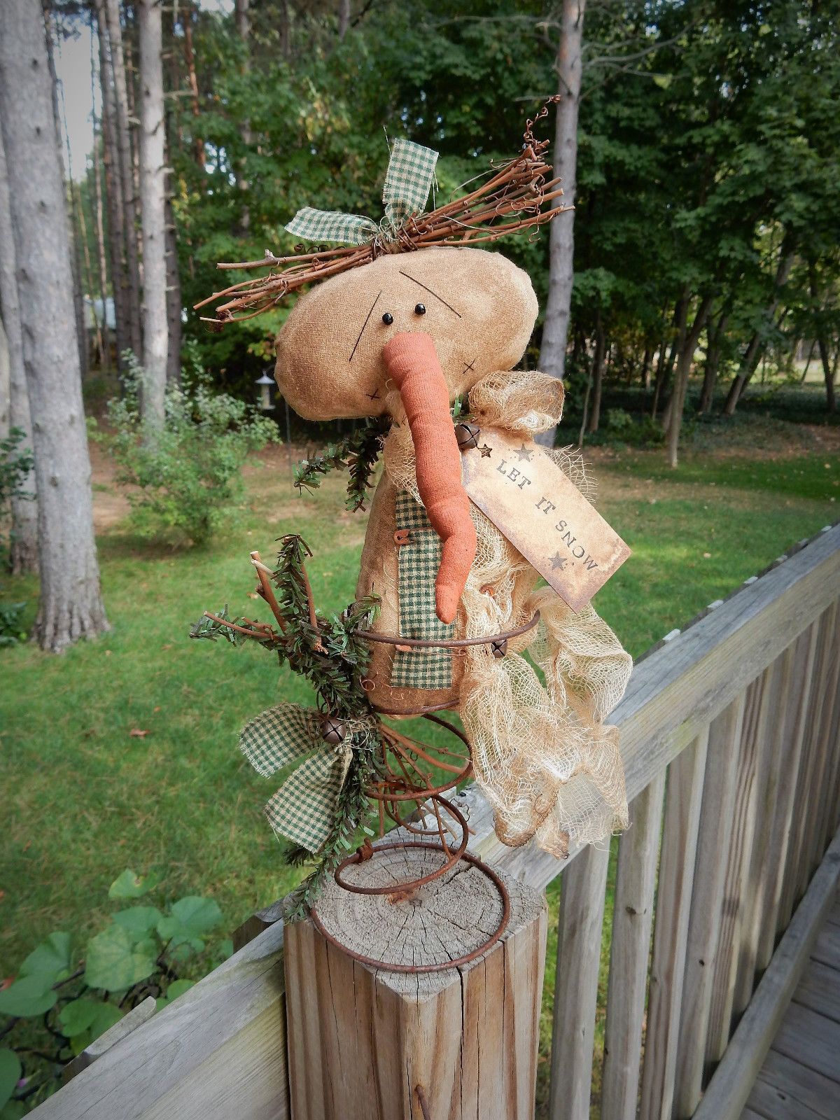Title (ebay affiliate link): FoLk Art PrimiTive Winter ChrisTmas SNOWMAN DOLL Tree Topper Table DecoraTion