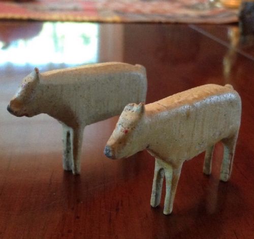 Early Antique Primitive Hand Carved Wooden Animals Noah''s Ark Cows