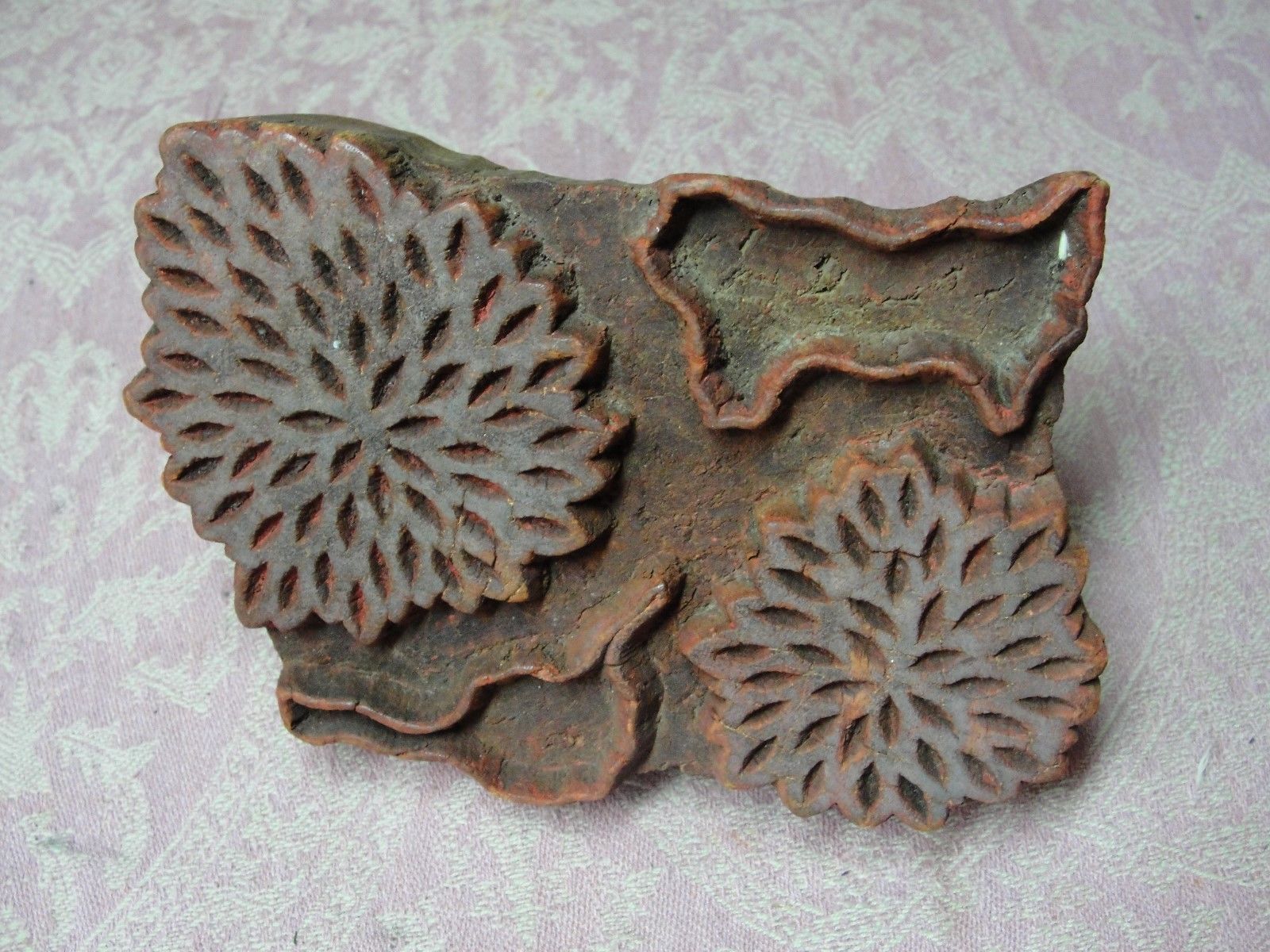 Antique Primitive Carved Wood Fabric Textile Wallpaper Printing Block