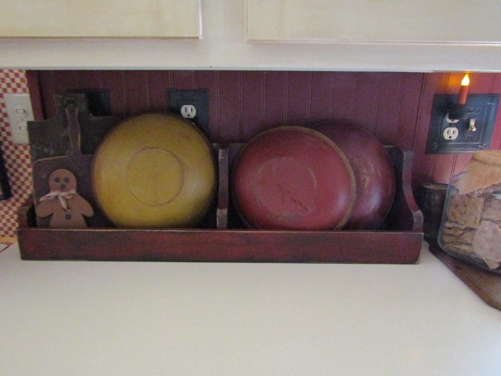 PRIMITIVE WOODEN RUSTIC BOWL/CROCK BIN FOR WALL OR COUNTERTOP-32" LONG-
