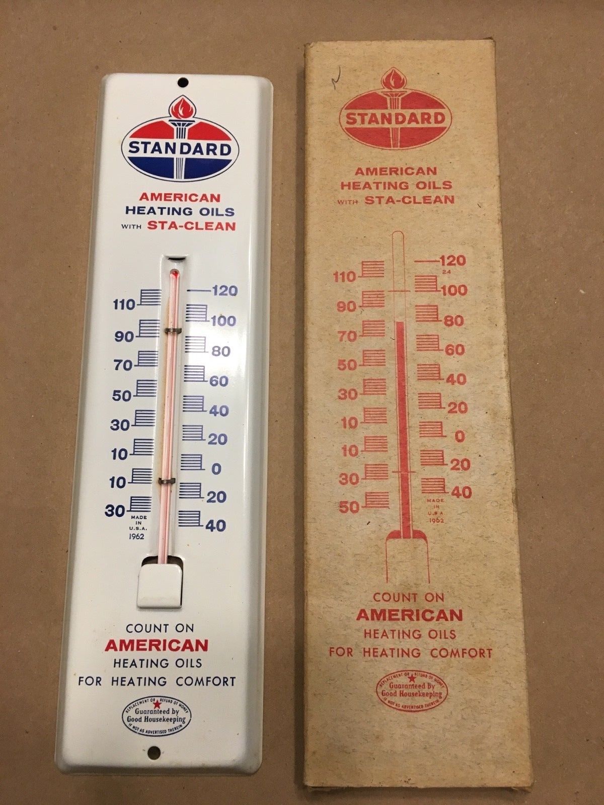 Title (ebay affiliate link): VINTAGE STANDARD AMERICAN HEATING OILS THERMOMETER USA 1962 WITH BOX L@@K