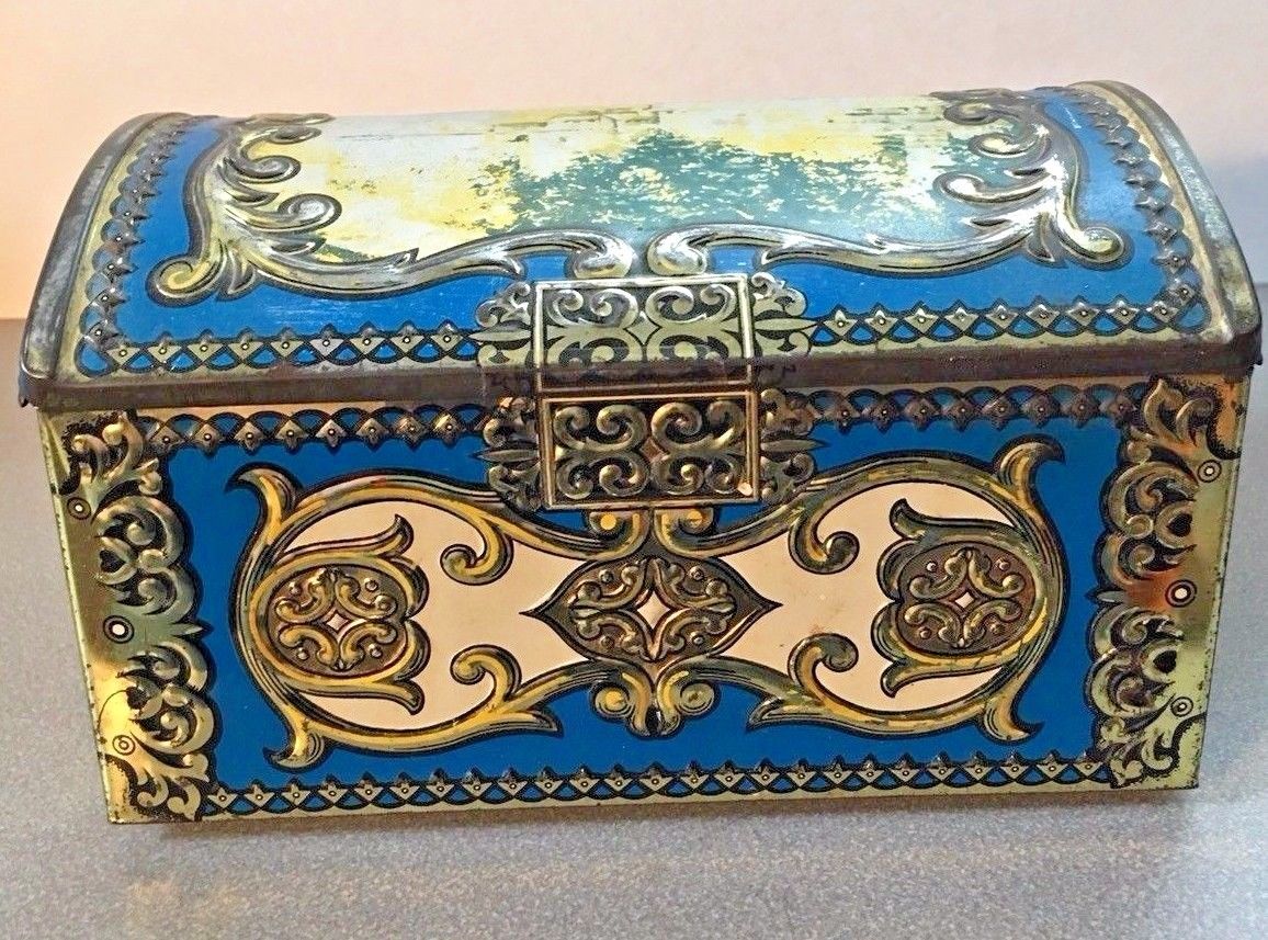 Title (ebay affiliate link): GOTTFRIED WICKLEIN Chest Style Tin w/ hinged Lid Made in Germany VINTAGE