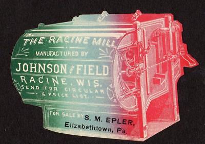 Title (ebay affiliate link): ELIZABETHTOWN PA*SM EPLER*THE RACINE MILL*JOHNSON & FIELD*DIE CUT*TRADE CARD*VTC