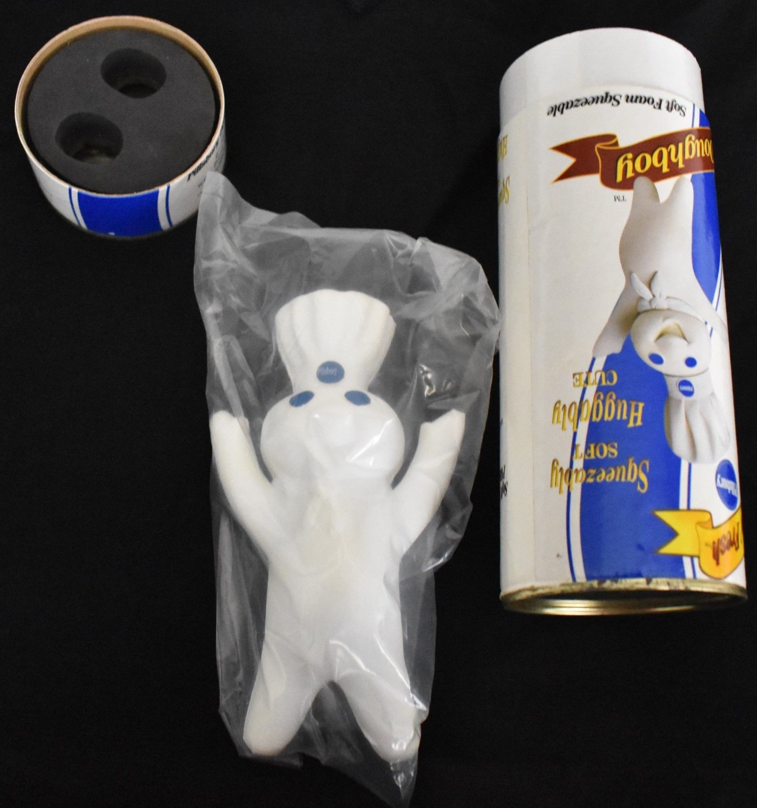 Title (ebay affiliate link): Pillsbury Doughboy in Can Soft Foam Squeezable Collectible w Stand Unopened Bag