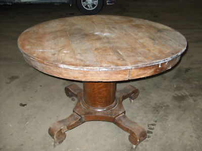 Title (ebay affiliate link): Antique Round Pedestal Dining Table Wood Wheels 48" dia
