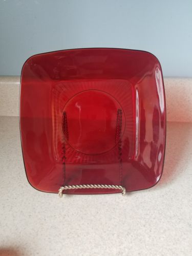 Title (ebay affiliate link): RUBY RED depression era square luncheon/salad plates vintage