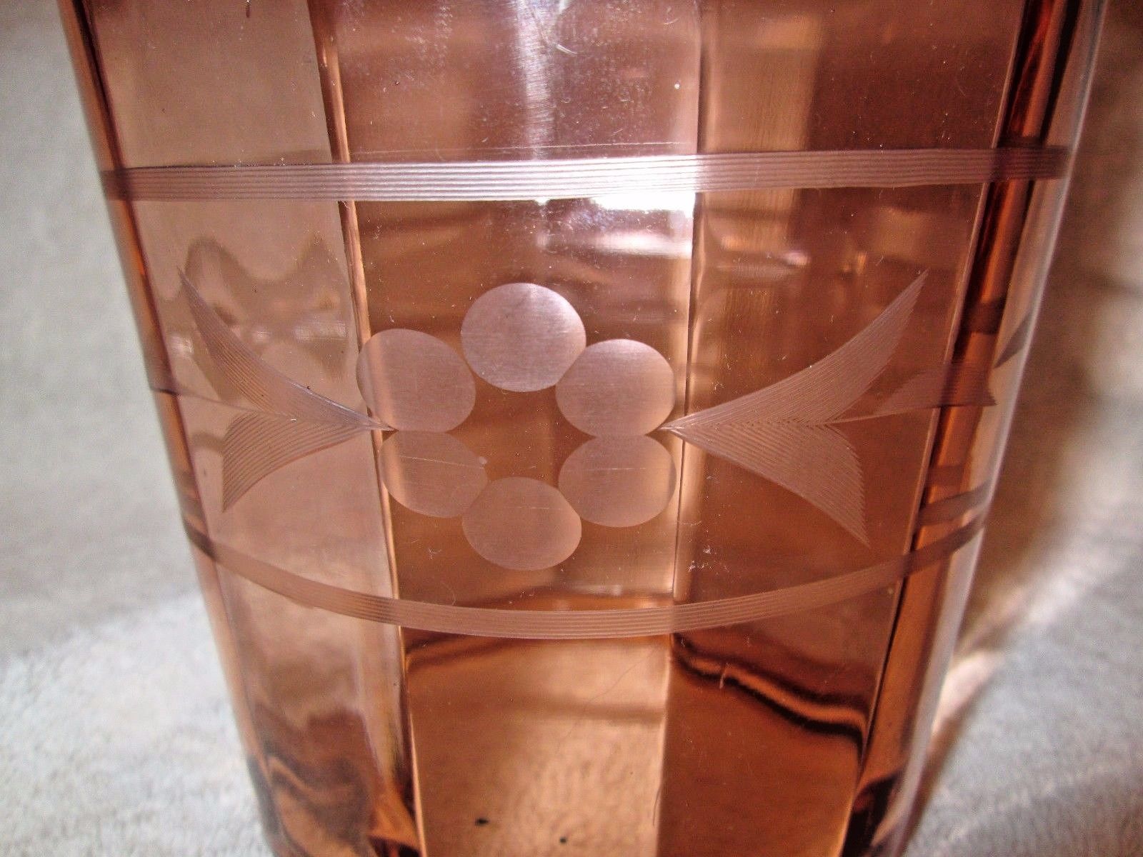 Vintage Pink Depression Glass Etched Glass Ice Bucket / Metal Handle AS IS