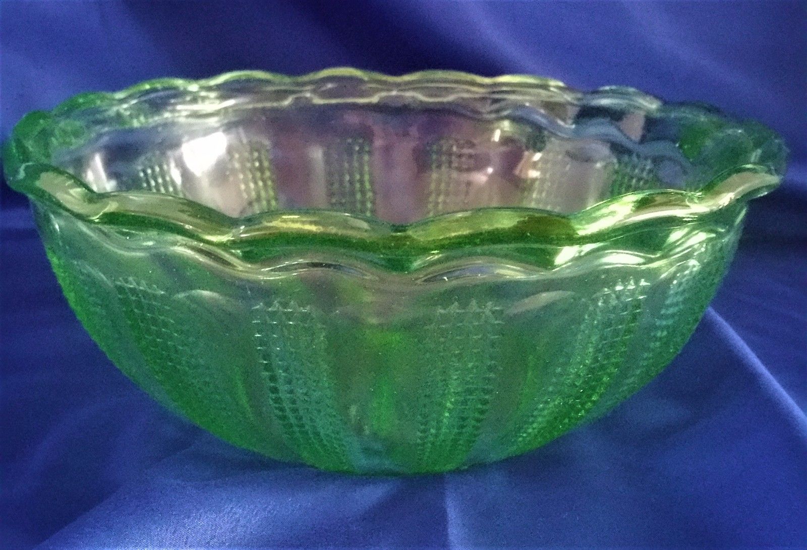 Title (ebay affiliate link): Unique Vintage Green depression glass decorative bowl 7.75 inches diameter