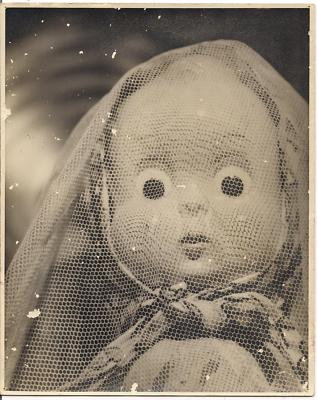 WEIRD ANTIQUE? DOLL WITH VEIL PHOTOGRAPH - SHARK SKIN ?