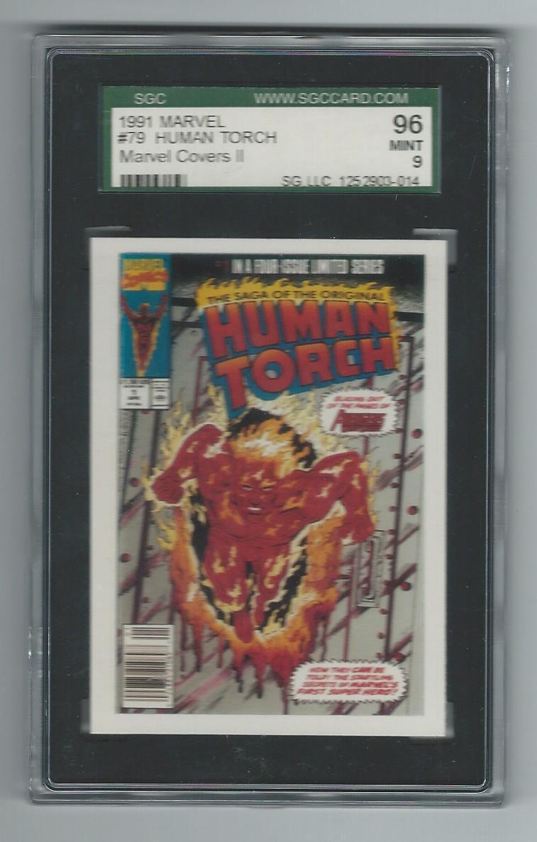 Title (ebay affiliate link): 1991 MARVEL HUMAN TORCH MARVEL COVERS II #79 GRADED CARD SGC 96 9