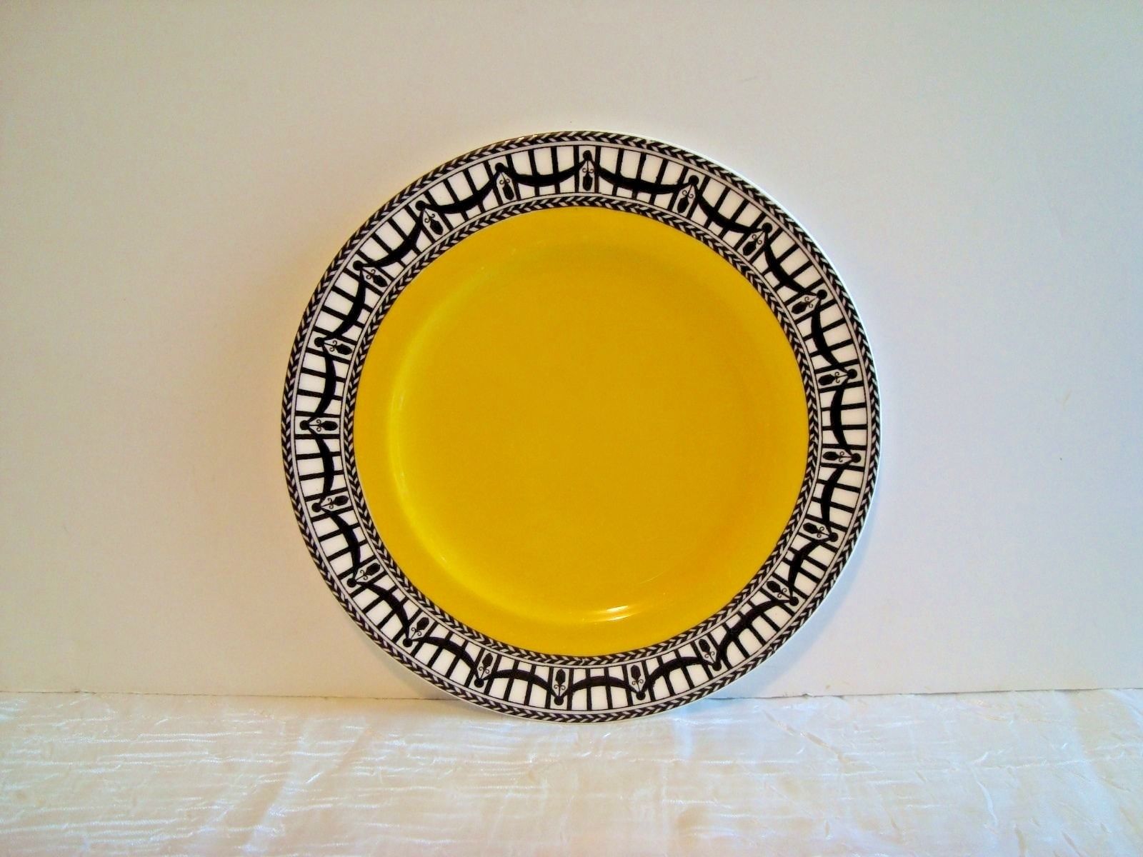 Title (ebay affiliate link): Royal Worcester Art Deco Black & Yellow Plate RW309 ~ Excellent 8" Salad