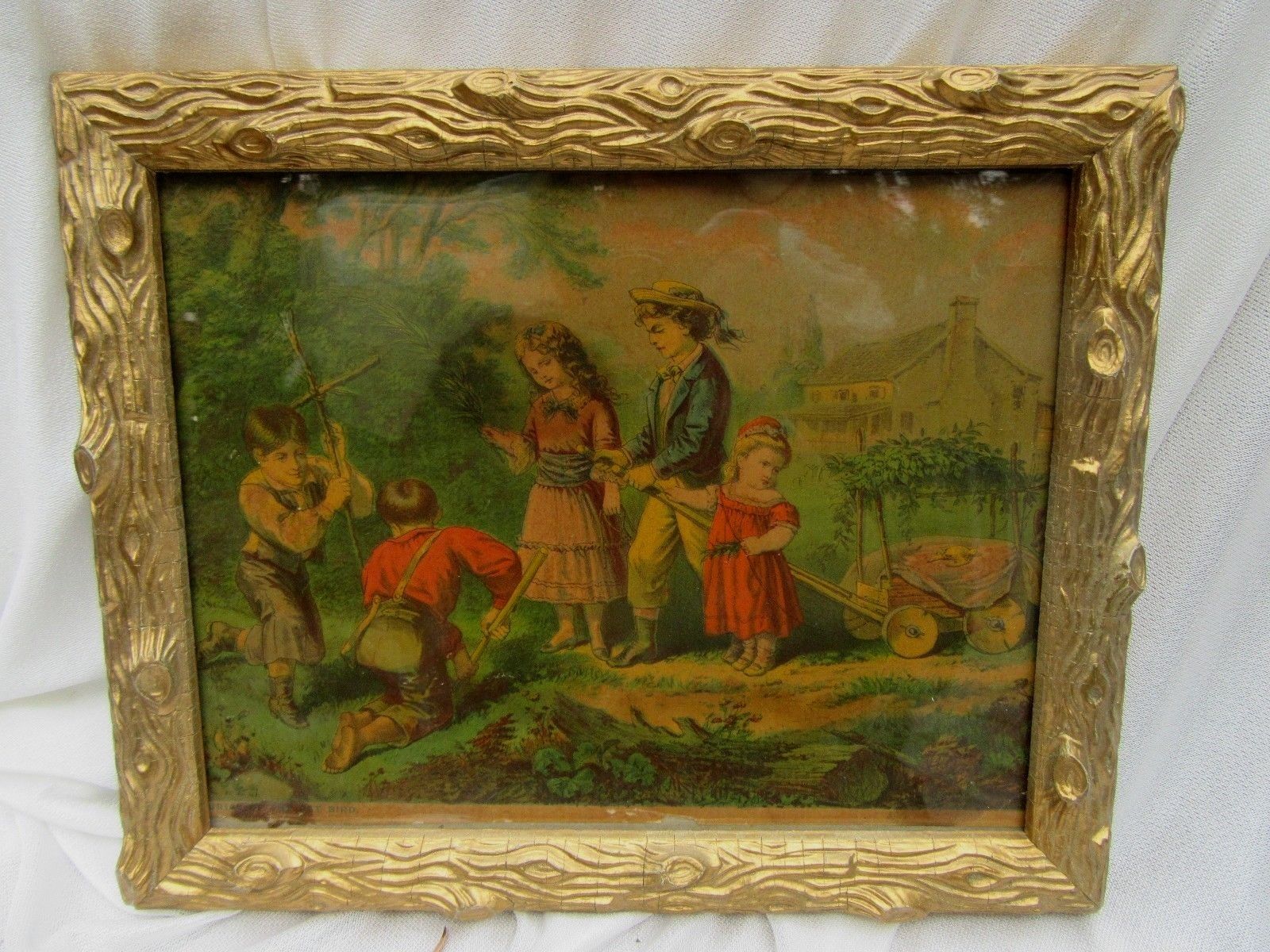 Title (ebay affiliate link): Antique Victorian Print Titled Burial of the Pet Bird with Children 8 x 10 Frame