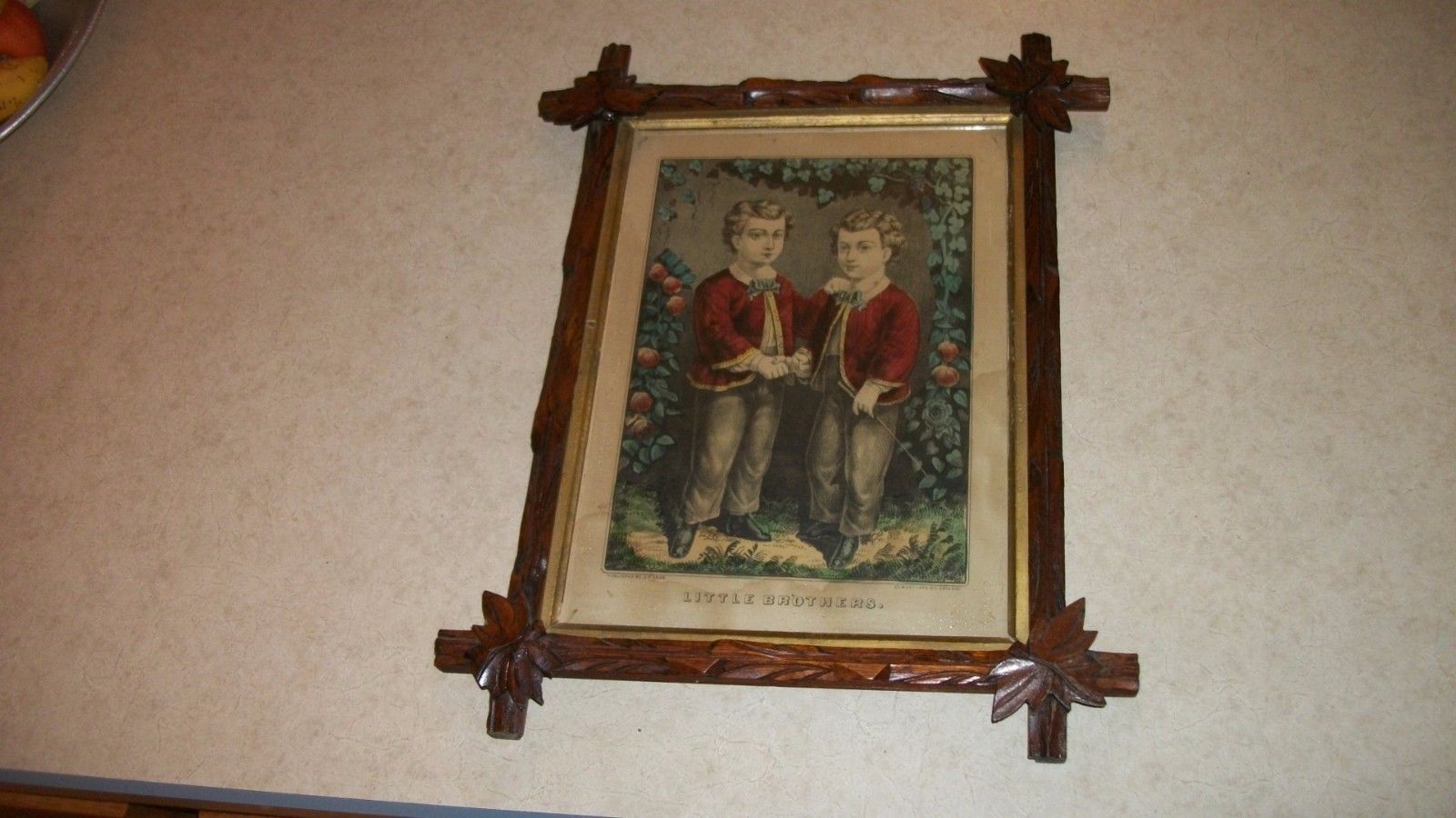 Title (ebay affiliate link): Vintage Tramp Art Picture Frame w Antique Leaf Corners / "Little Brothers" print