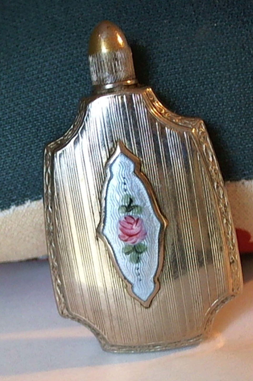 Title (ebay affiliate link): ANTIQUE PINK FLOWER & BLUE GUILLOCHE ENAMEL SILVER PERFUME/SNUFF BOTTLE