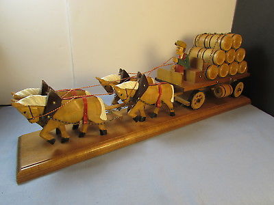 Title (ebay affiliate link): GERMAN HOFBRAU BEER WAGON Hand Carved Wood 2 Horses & Beer Barrels VTG