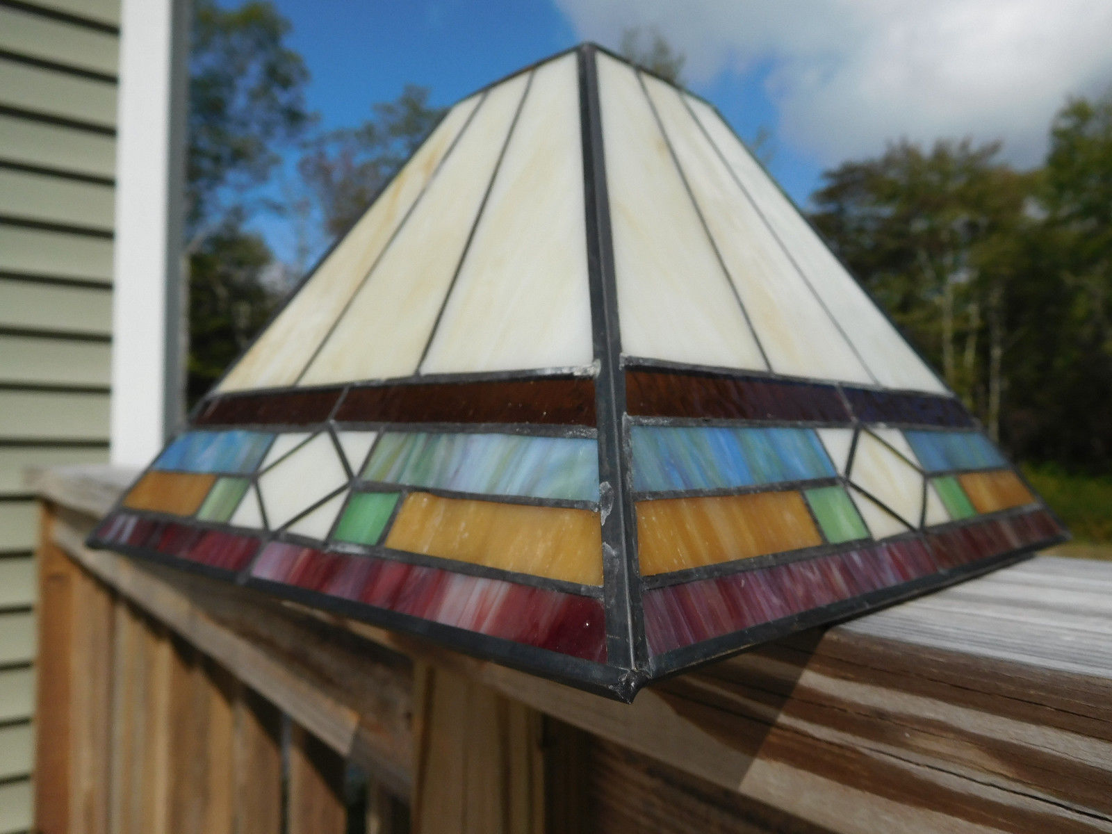Title (ebay affiliate link): VINTAGE ARTS & CRAFTS AESTHETIC MISSION SLAG GLASS~COPPER FOIL SOLDER LAMPSHADE