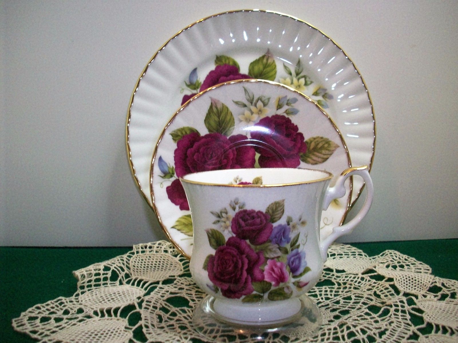 Vintage Gorgeous Royal Stafford 1 Sets Cups, Saucers,& Cake Plate