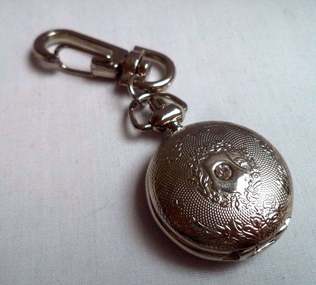 Title (ebay affiliate link): STUNNING VINTAGE ESTATE SILVER TONE WATCH CLOCK 3 1/4" KEYCHAIN!! 7862P