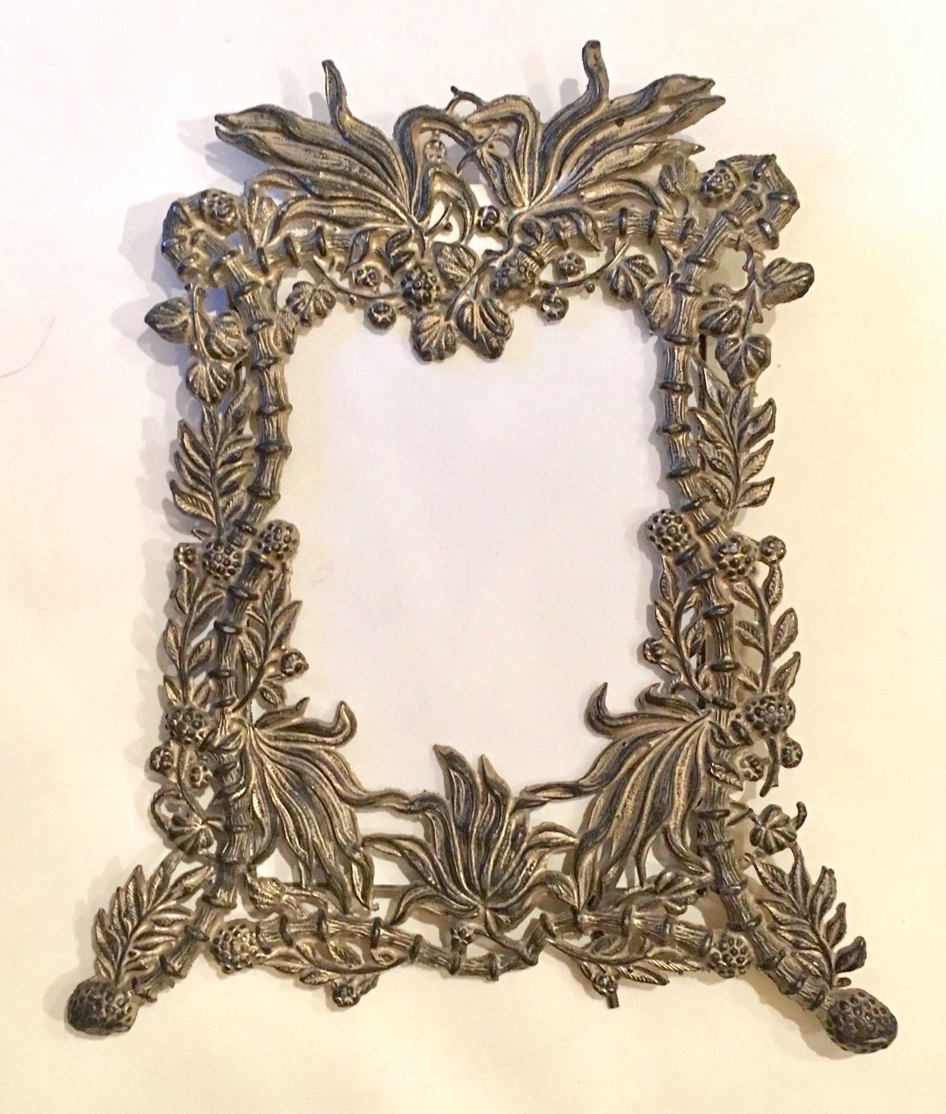 Vintage ornate Victorian Aesthetic white metal Cabinet Photo Frame c. 1890 - 1