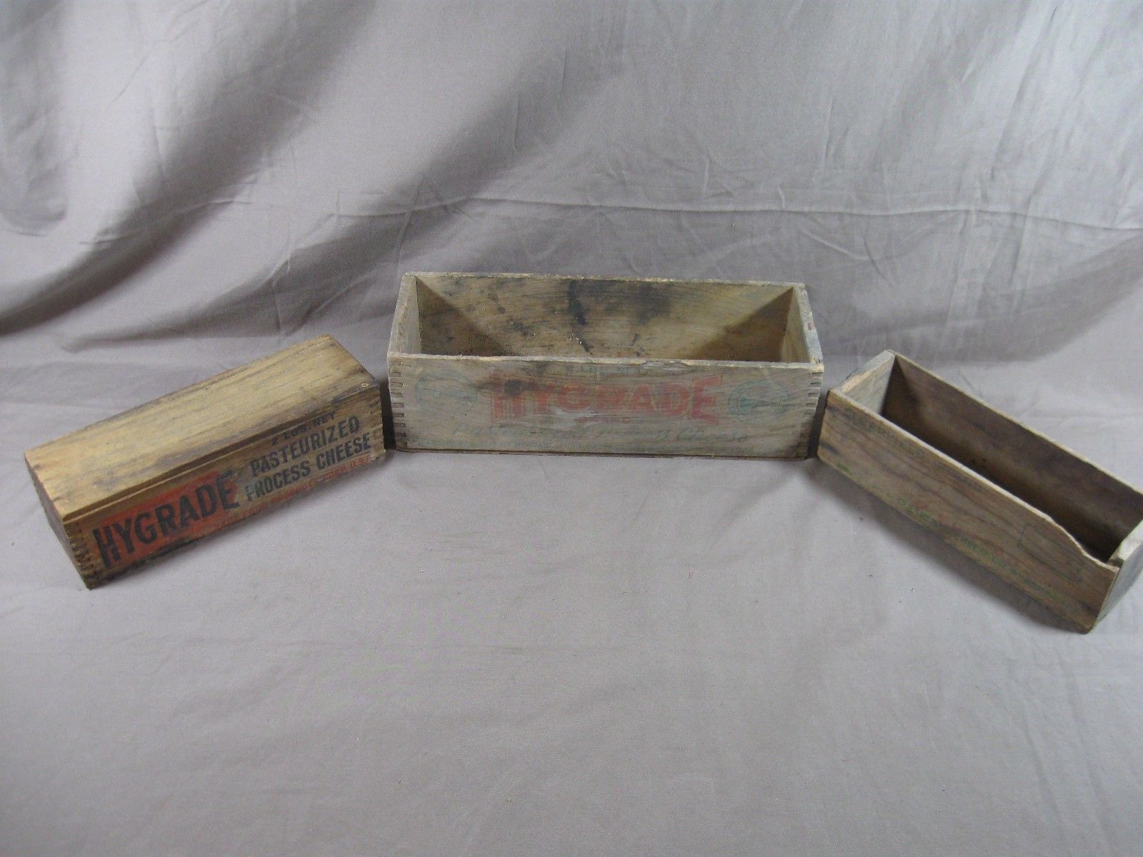 3 Antique HYGRADE Pasteurized Process Cheese Wooden Boxes
