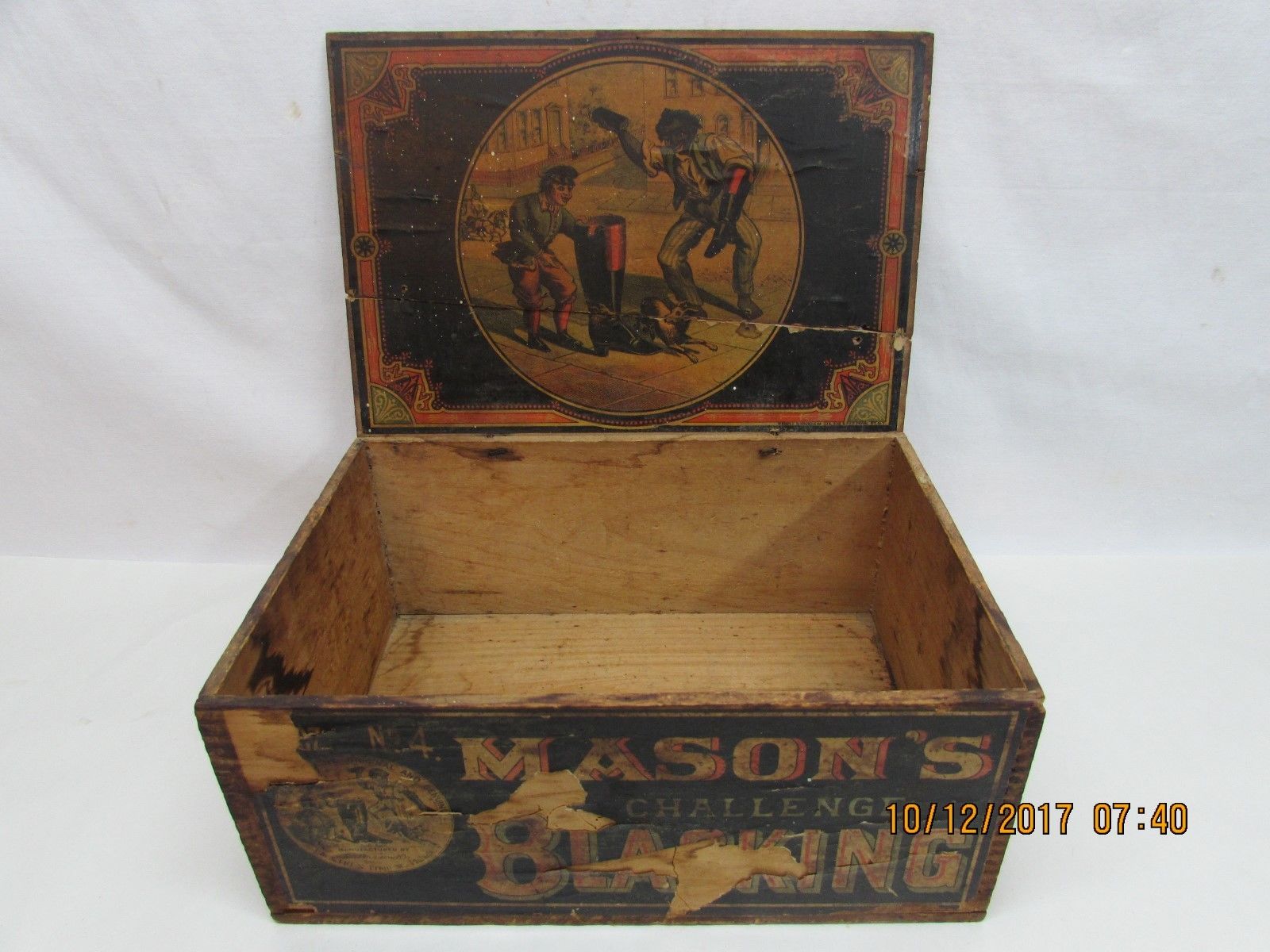 ANTIQUE MASON''S BLACKING #4 DISPLAY BOX ADVERTISING SHOE POLISH BLACK AMERICANA