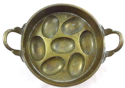 ANTIQUE BRASS (7) OVAL LARGE EGG POACHER 10" D x 4 1/2" H