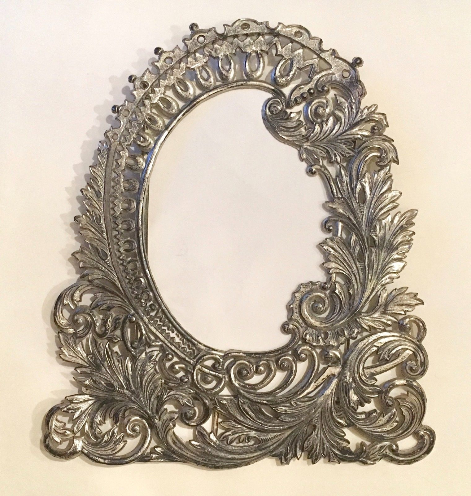 Vintage ornate Victorian Aesthetic white metal Cabinet Photo Frame c. 1890 - 3