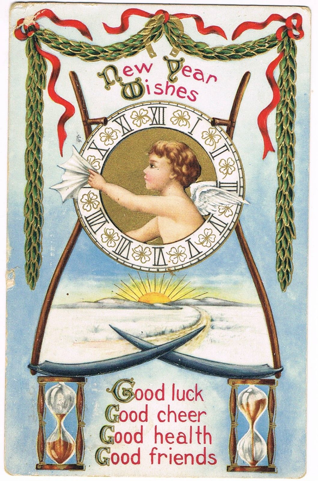 Title (ebay affiliate link): ANTIQUE NEW YEAR''S Postcard BABY NEW YEAR IN CLOCK, HOURGLASSES FULL AND EMPTY