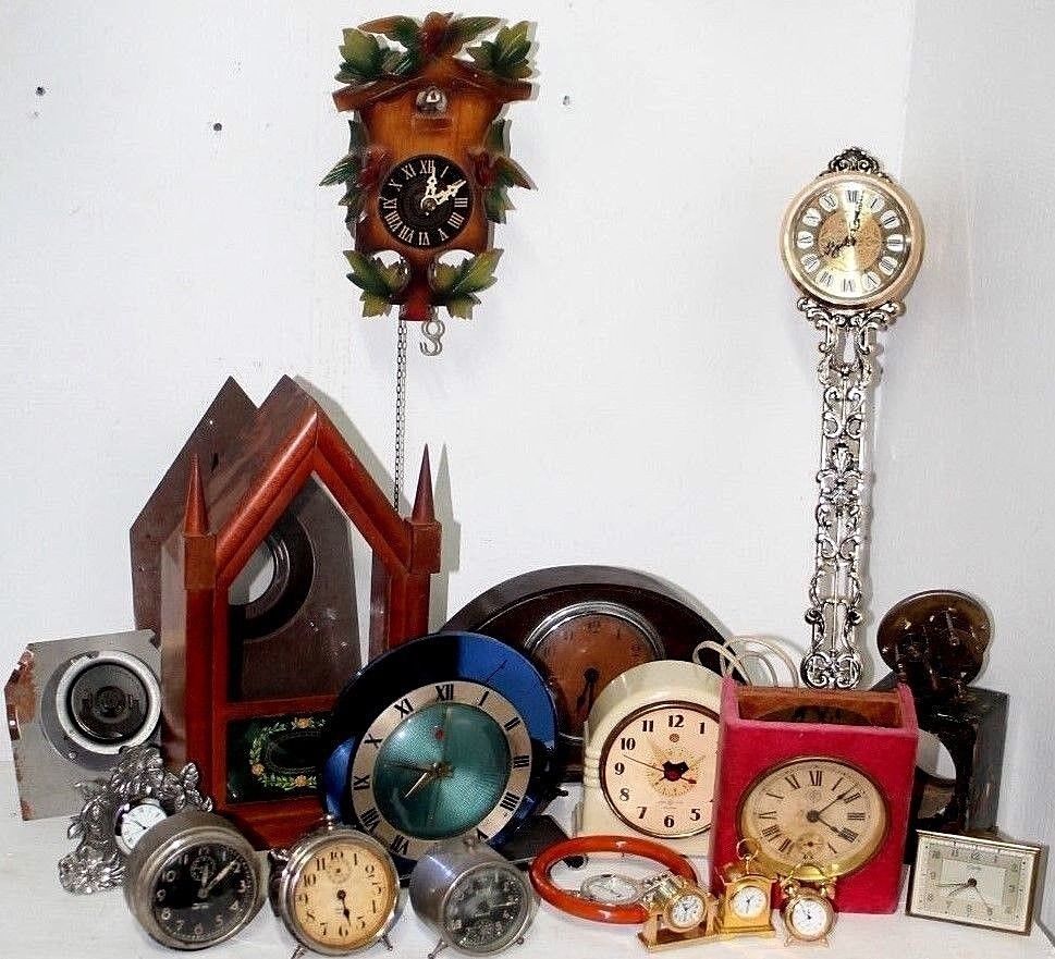 Title (ebay affiliate link): LARGE LOT OF ANTIQUE / VINTAGE CLOCKS & PARTS. SETH THOMAS, NEW HAVEN, WESTCLOX.