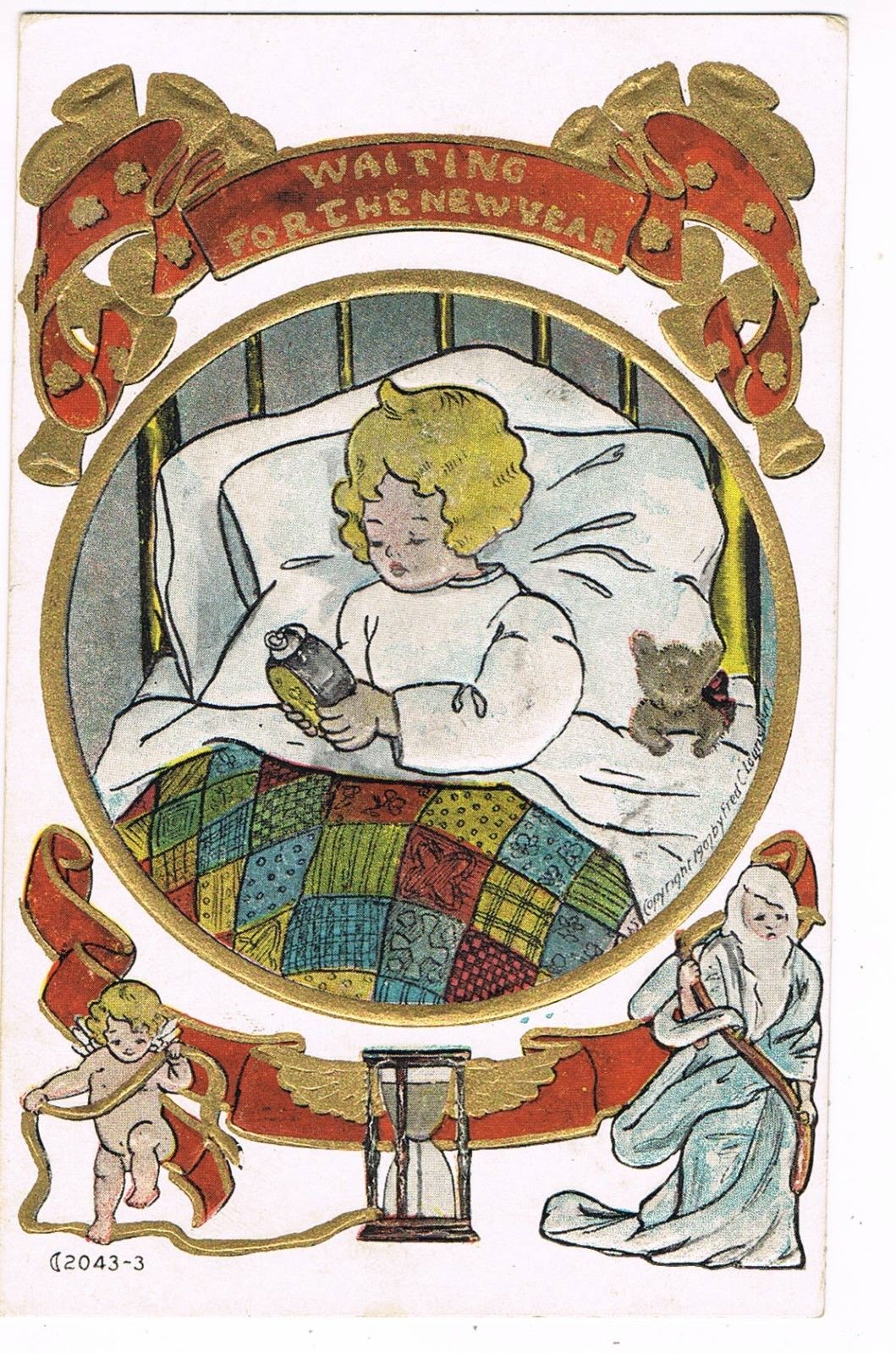 Title (ebay affiliate link): ANTIQUE EMBOSSED NEW YEAR''S Postcard "WAITING FOR THE NEW YEAR", CHILD, CLOCK