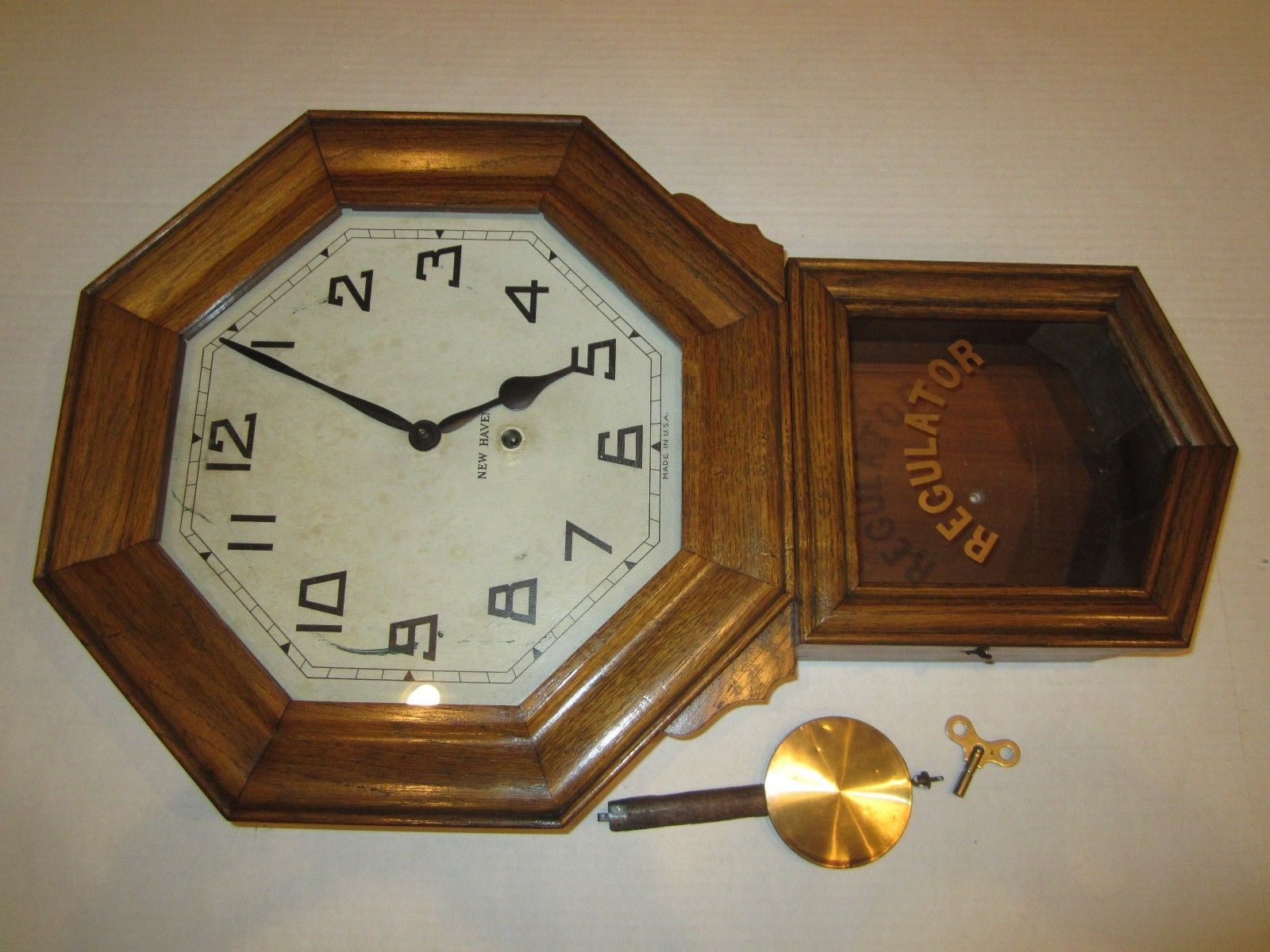 Title (ebay affiliate link): ANTIQUE NEW HAVEN ERIE WALL REGULATOR CLOCK TIME ONLY, 8 DAY, KEY WIND
