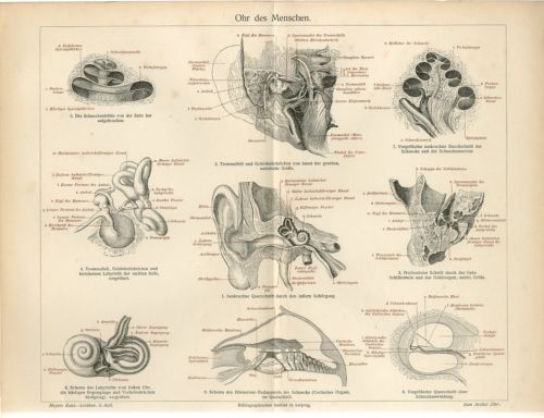 1894 HUMAN EAR ANATOMY Antique Engraving Print