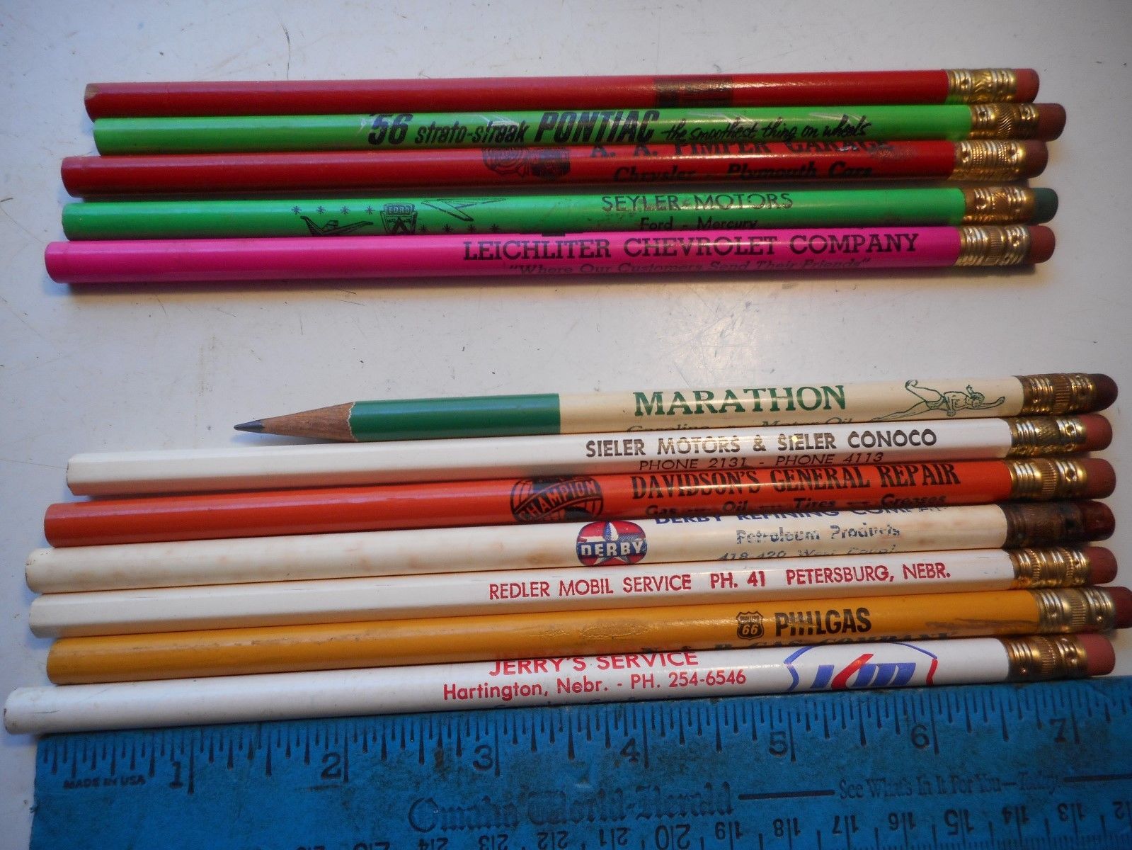 VTG PENCIL (12) WOODEN ADV. PENCILS CHEVY FORD MERCURY PONTIAC MOBIL KM DERBY 66
