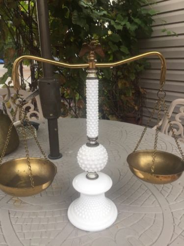 Vintage Hobnail Milk Glass Brass Scales of Justice