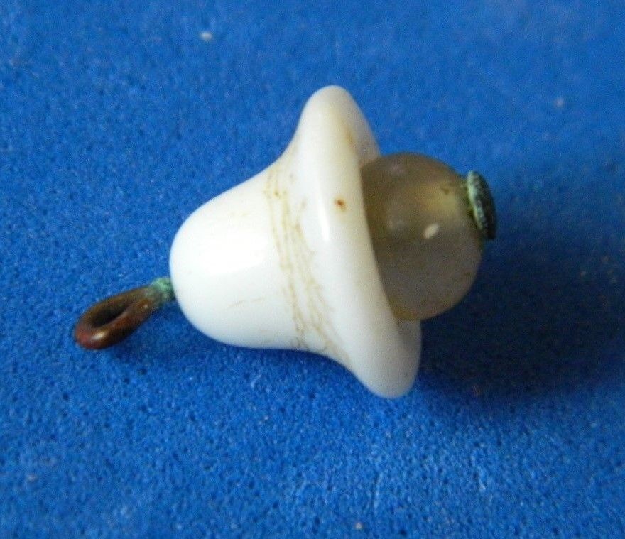Antique Vtg - Milk GLASS Button w Pin Shank w Glass TOP -