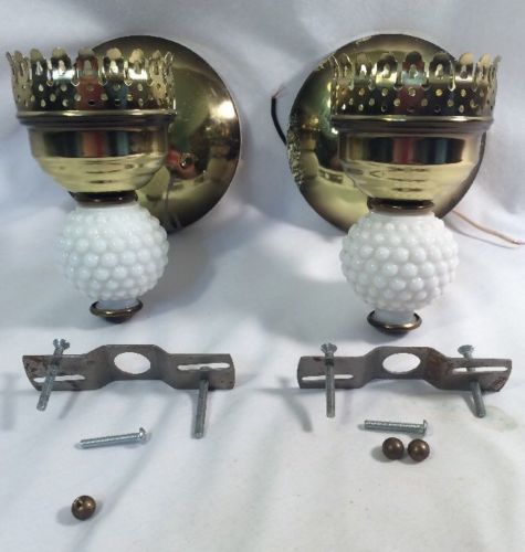 Title (ebay affiliate link): PAIR VINTAGE WHITE MILK GLASS HOBNAIL WALL SCONCE LIGHT LAMP