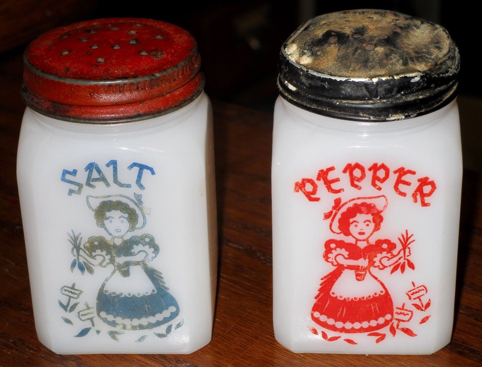 Title (ebay affiliate link): Mary Mary nursery rhyme Tips City milk glass salt and pepper shakers