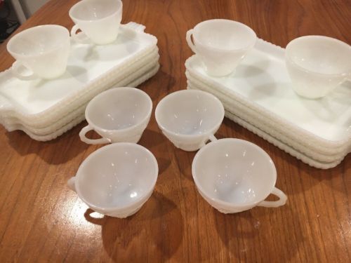 Vintage Anchor Hocking Fire King 16-pc Milk glass Snack Serva Set Grape Bubble