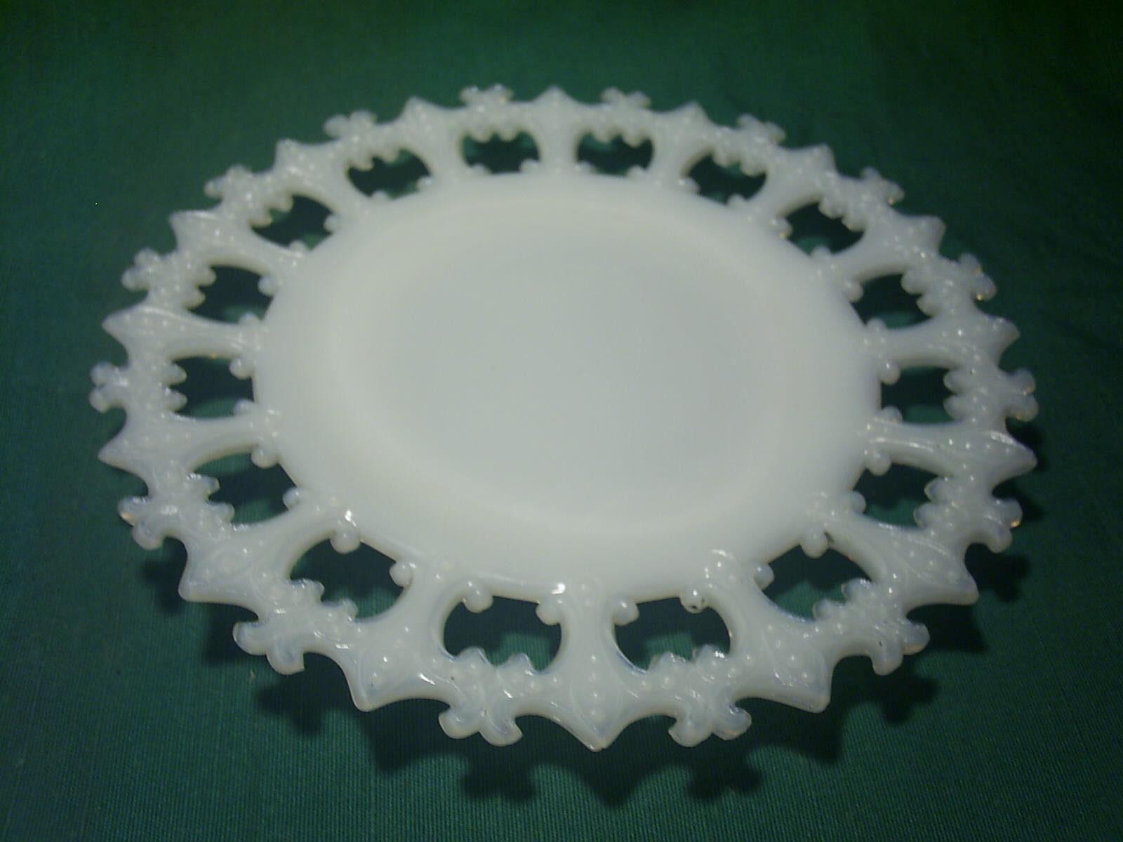 Title (ebay affiliate link): Antique White Milk Glass Trinket Tray Plate Fancy Firey Open Lace Lattice Edge