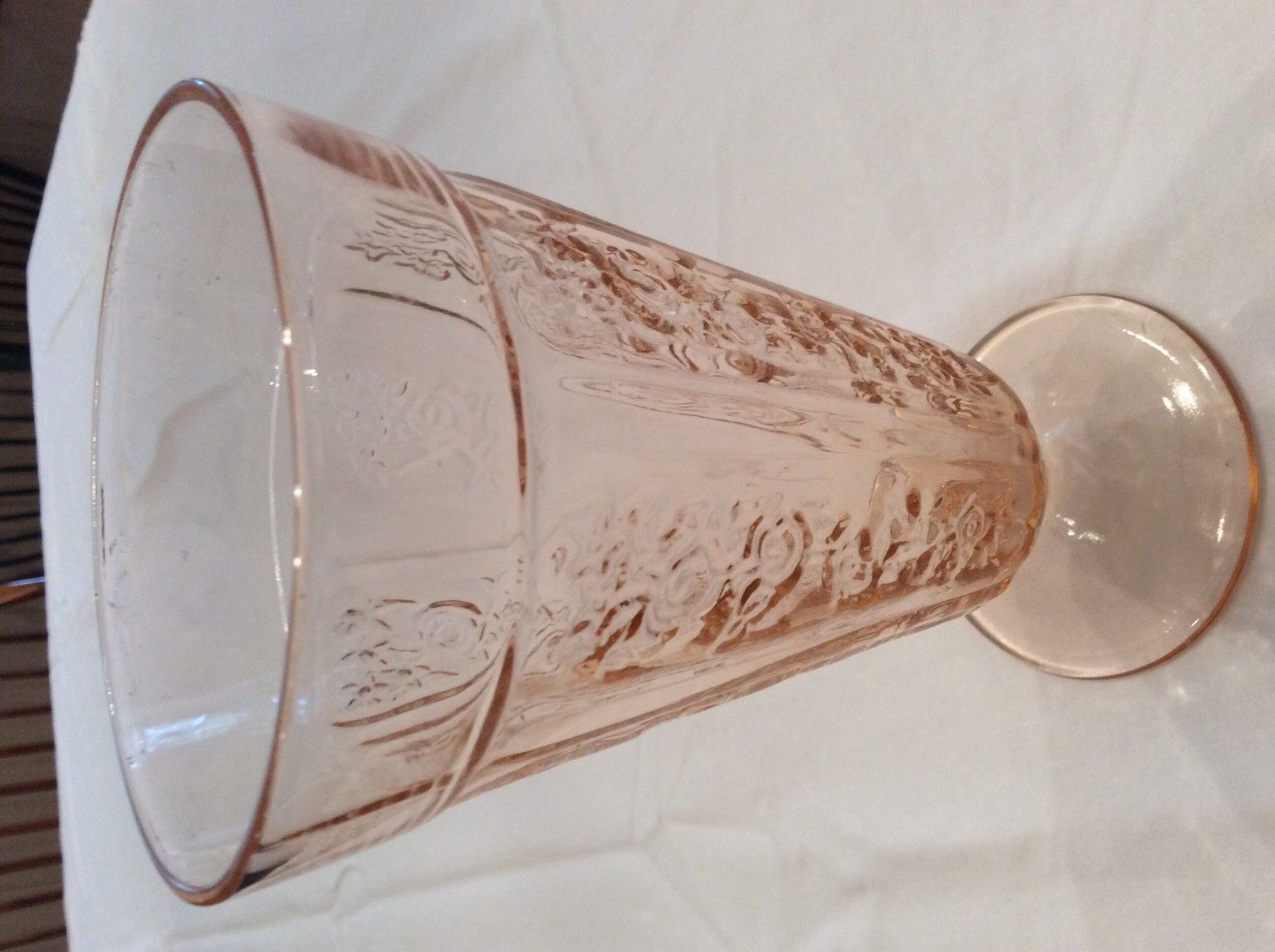 Title (ebay affiliate link): Pink depression glass, floral design, parfait, vase