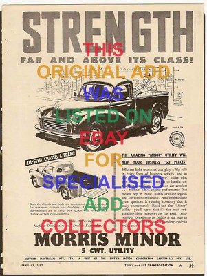 Title (ebay affiliate link): MORRIS MINOR 1957 UTILITY MAGAZINE ADVERTISEMENT
