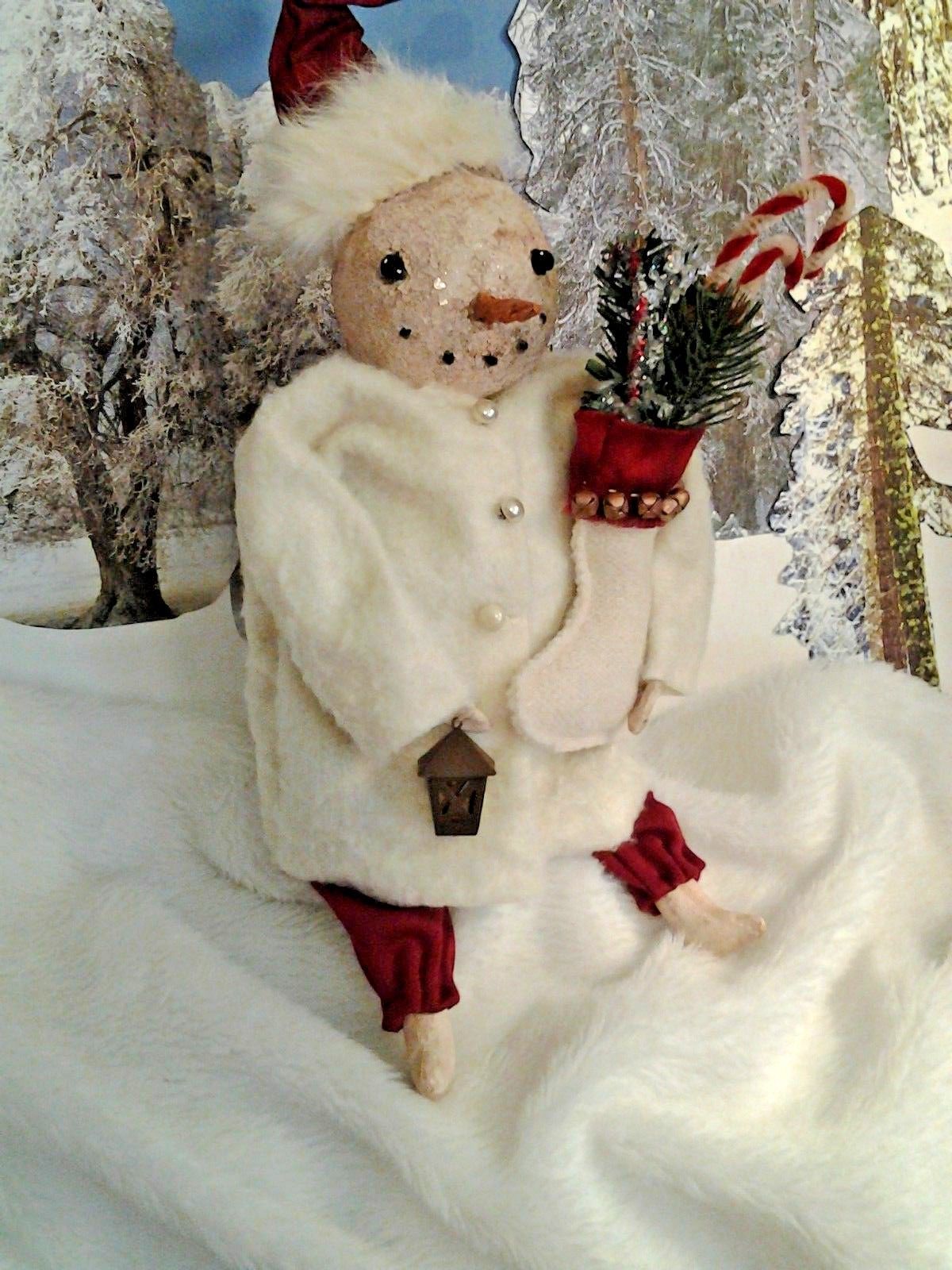 Primitive doll, snowman, hndmade OOAK,Christmas holiday home decor.