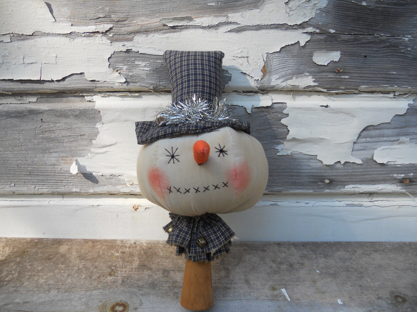 Title (ebay affiliate link): Primitive Christmas Frosty Snowman Ornie Shelf Sitter Make Do Decor
