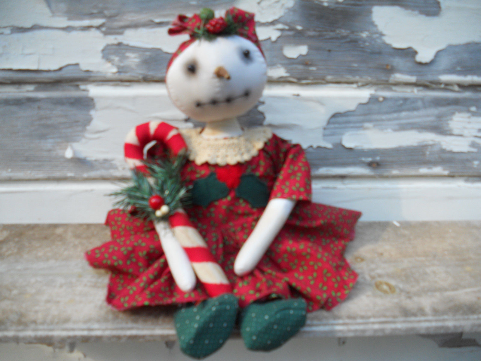 Title (ebay affiliate link): Primitive Christmas Snowman Snowgirl Doll Shelf Sitter Hollies & Berries