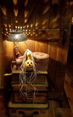 Title (ebay affiliate link): Primitive Halloween make-do early lighting gourd jack-o-lantern w/tea light.