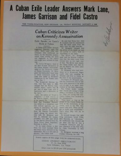 Title (ebay affiliate link): CARLOS BRINGUIER SIGNED ORIGINAL 1960S LEAFLET KENNEDY ASSASSINATION JFK OSWALD