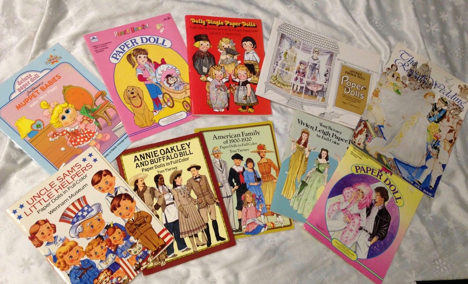 Title (ebay affiliate link): Large Lot Of 10 Paper Dolls, Annie Oakley, American Family, Vivien Leigh & more