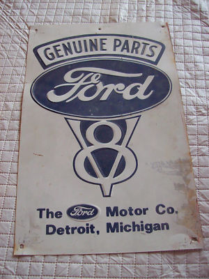 Title (ebay affiliate link): VINTAGE, TIN SIGN, "FORD V8; GENUINE PARTS"; ORIGINAL
