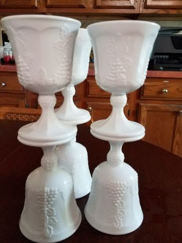 Title (ebay affiliate link): Vintage 6 White Milk Glass Stemware Goblets Grape Harvest Pattern