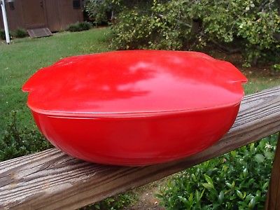 Vintage PYREX 9" sq RED BAKING DISH Serving w/LID White milk glass #6268-026